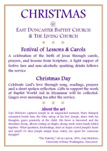 Welcome to East Doncaster Baptist Church, a Christian congregation open to the rich diversity that is found in both faith and life. As a community we seek to follow the life and teachings of Jesus which leads us to experience the goodness of God in ourselves and each other.
